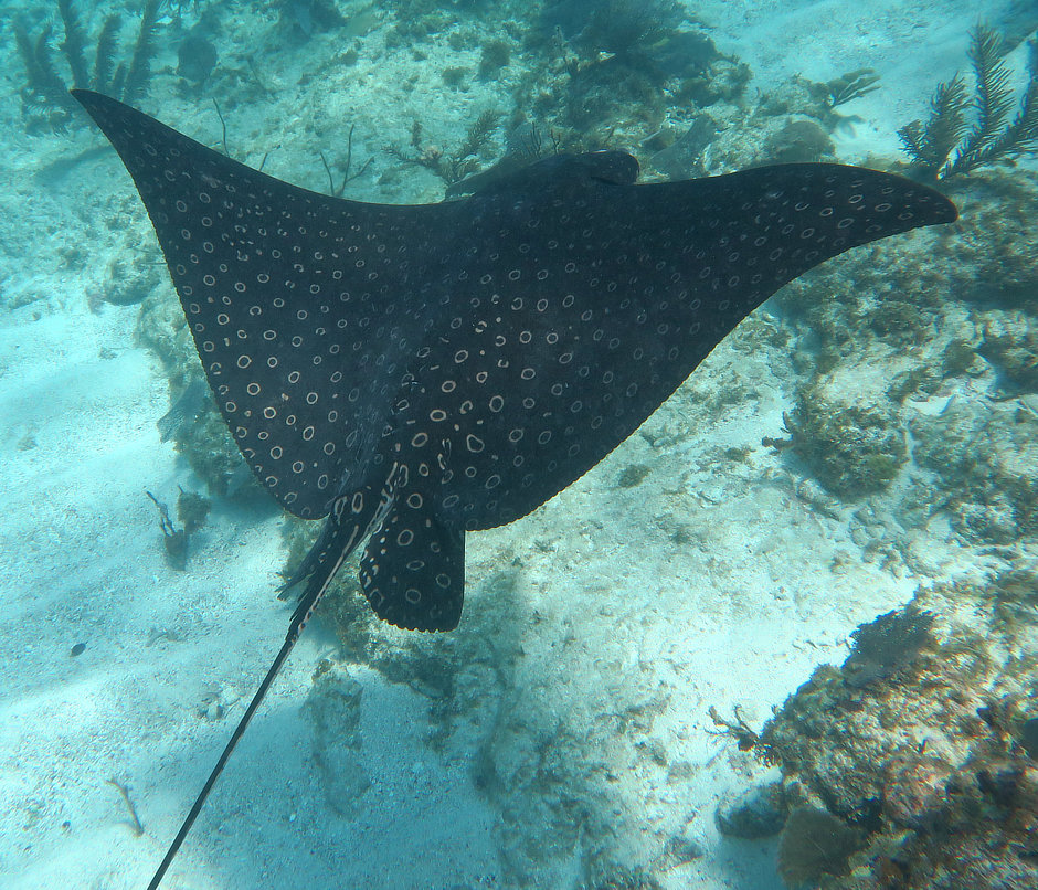 Large Spotted Eagle Rays are common in this area and we saw many. We also saw a number of Yellow Stingrays, some Chupare Stingrays, and some Southern Stingrays.